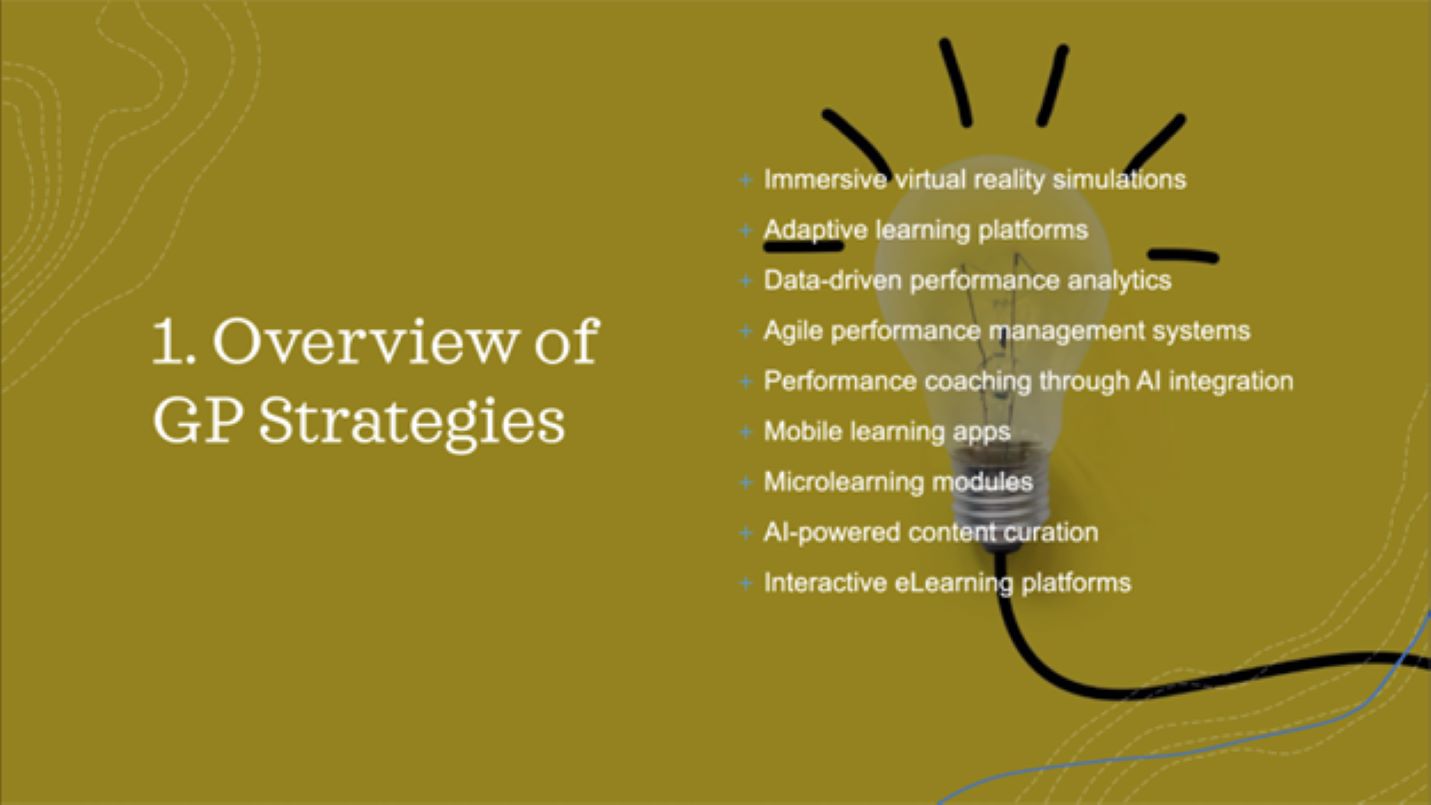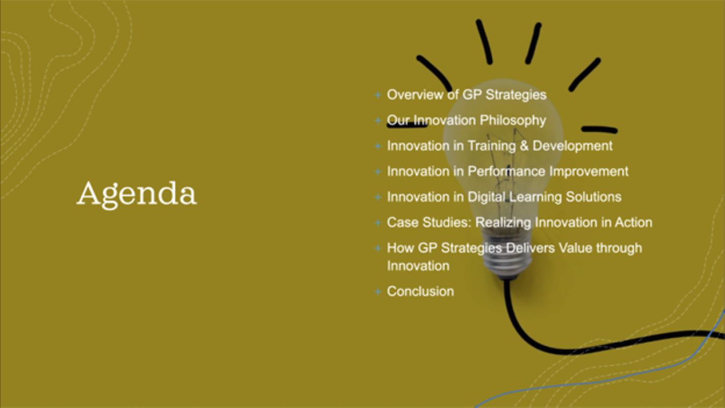 Intent: Educate audience on innovation at GP Strategies within the different divisions.