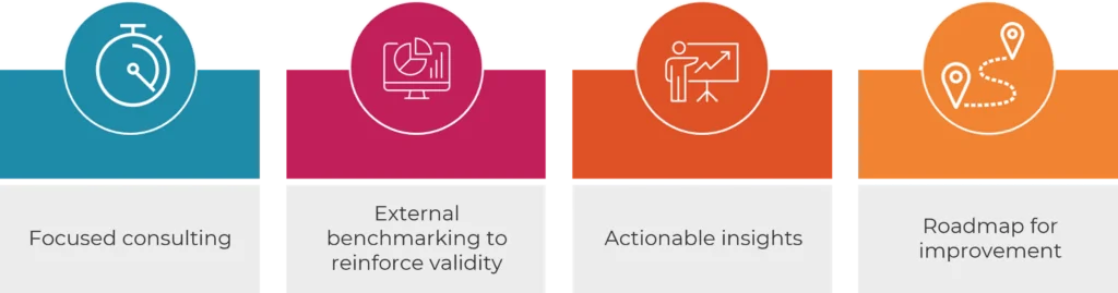 - Obtain a practical, actionable plan for immediate priorities and a roadmap to maturity that both support your organization’s strategic vision.
